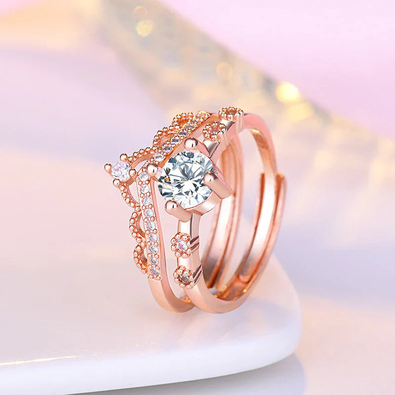 American Diamond Studded Crown Shape Contemporary Korean Finger Ring