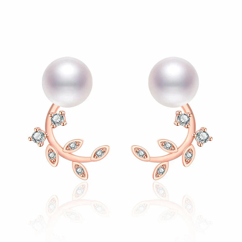 This Rose Gold Plated American Diamond Studded Pearl Leaf Korean Stud Earrings balances design, versatility, and craftsmanship, making it an ideal addition to any collection.